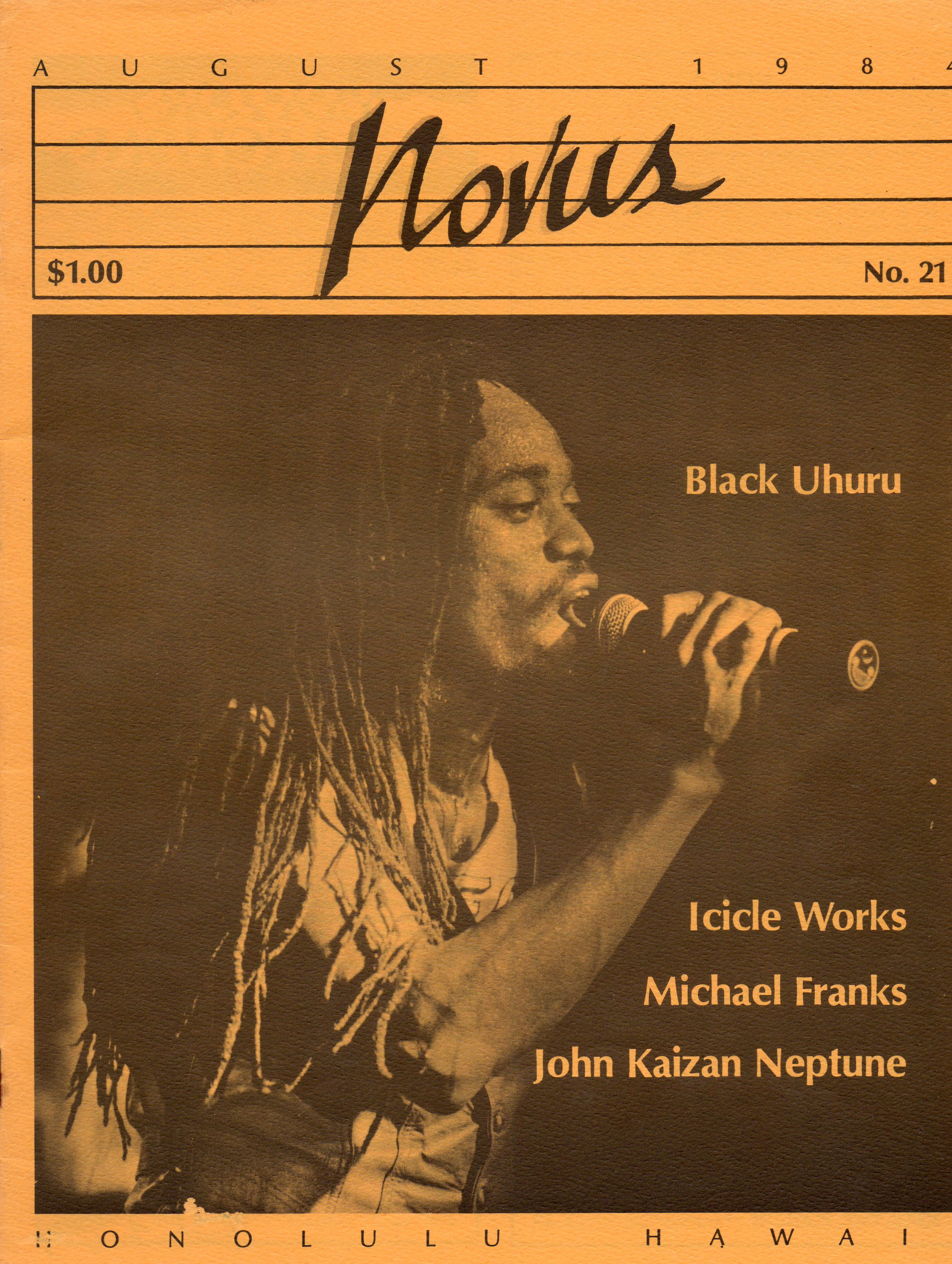 Between 500 and 1000 copies of Novus were printed each month, initially free to readers, who found it at places like Jelly’s and Tower Records. Subscriptions could be purchased for a nominal fee. Even early on, they’d managed to produce cover stories and interviews with The Pretenders, Grandmaster Melle Mel, Peter Moon Band and Black Uhuru, to name a few. It featured scads of reviews.